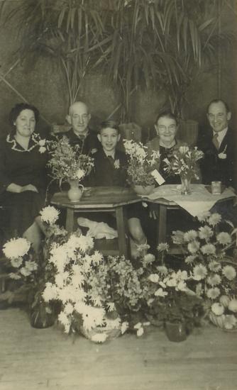 OpaOmaDoejaaren50thAnn1947926.jpg Gepubliceerd op 20 februari 2021 in Uit de oude doosVolledige resolutie (334 × 550) ← Vorige Volgende → 50 jaar Getrouwd van Links naar Rechts :Tante Lies,Franciscus Doejaaren,Frank Doejaaren,Maria De Koning,Henk Doejaaren